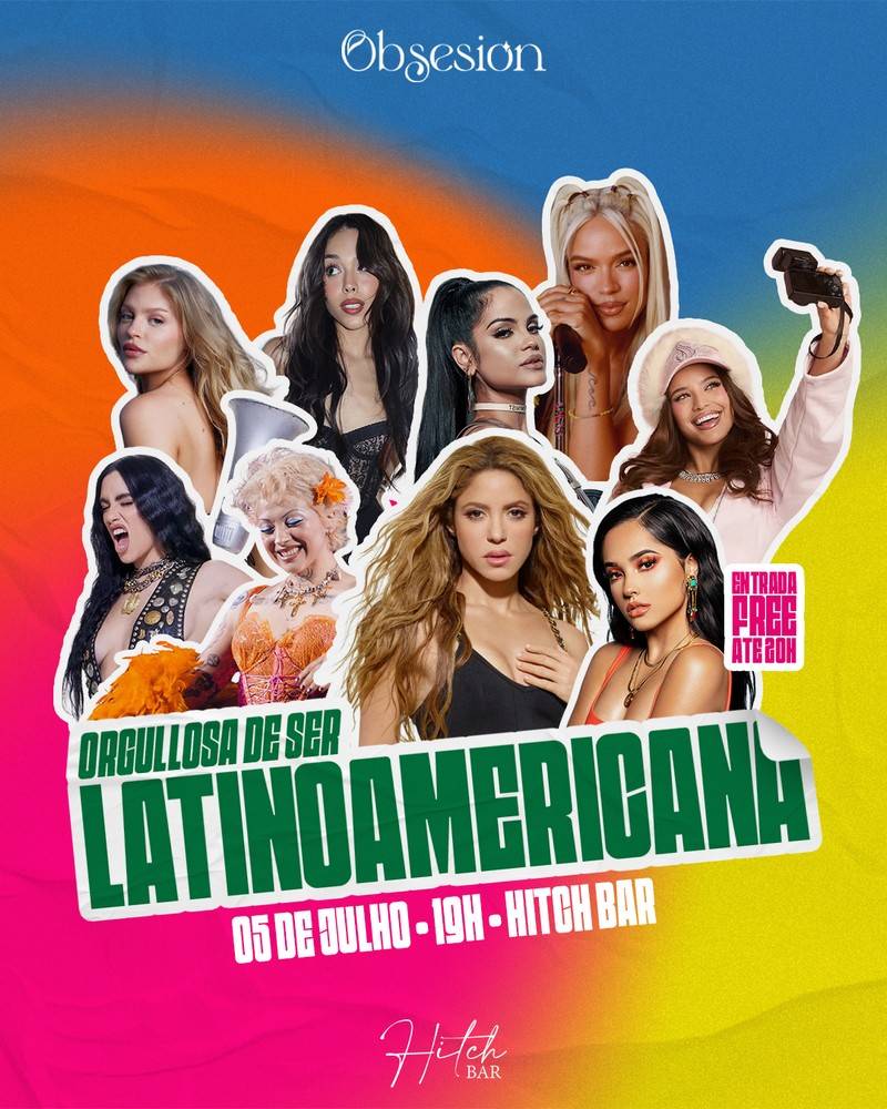 Dos clássicos do pop ao rock alternativo, a Festa Obsesión prepara sua nova edição “Orgullosx de ser Latinoamericanx” para este sábado (05), em São Paulo e de volta ao Hitch Bar. Nomes como Bad Bunny, Rauw Alejandro, Karol G, Lali, Tini, Emilia, Mon Lafert, entre outros, integram a set list dos DJs da noite. A entrada é gratuita até às 20h e o ingresso já pode ser retirado no sympla (clique aqui).